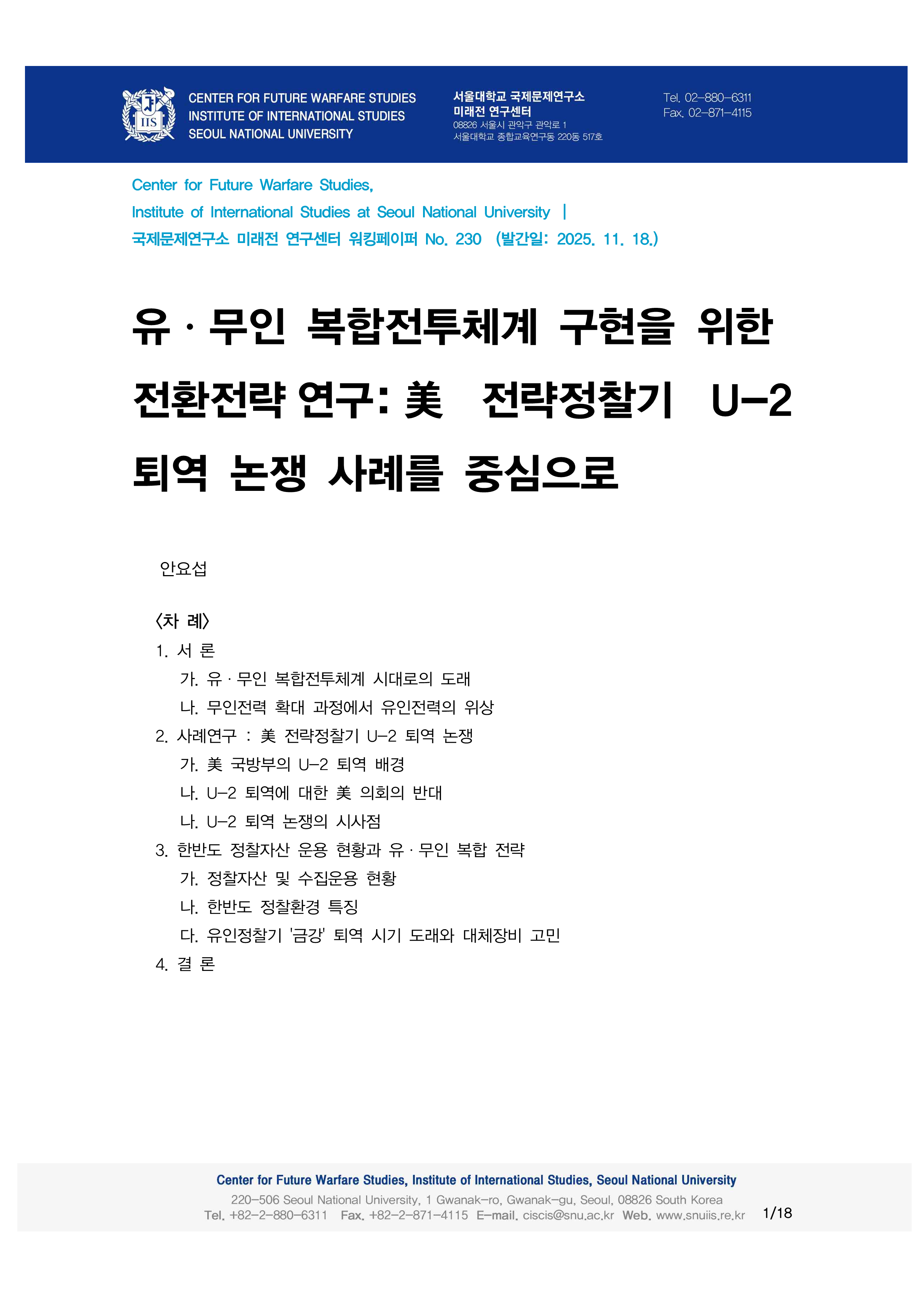 미래전 연구센터 워킹페이퍼 230 - 안요섭 - 유무인 복합전투체계 구현을 위한 전환전략 연구