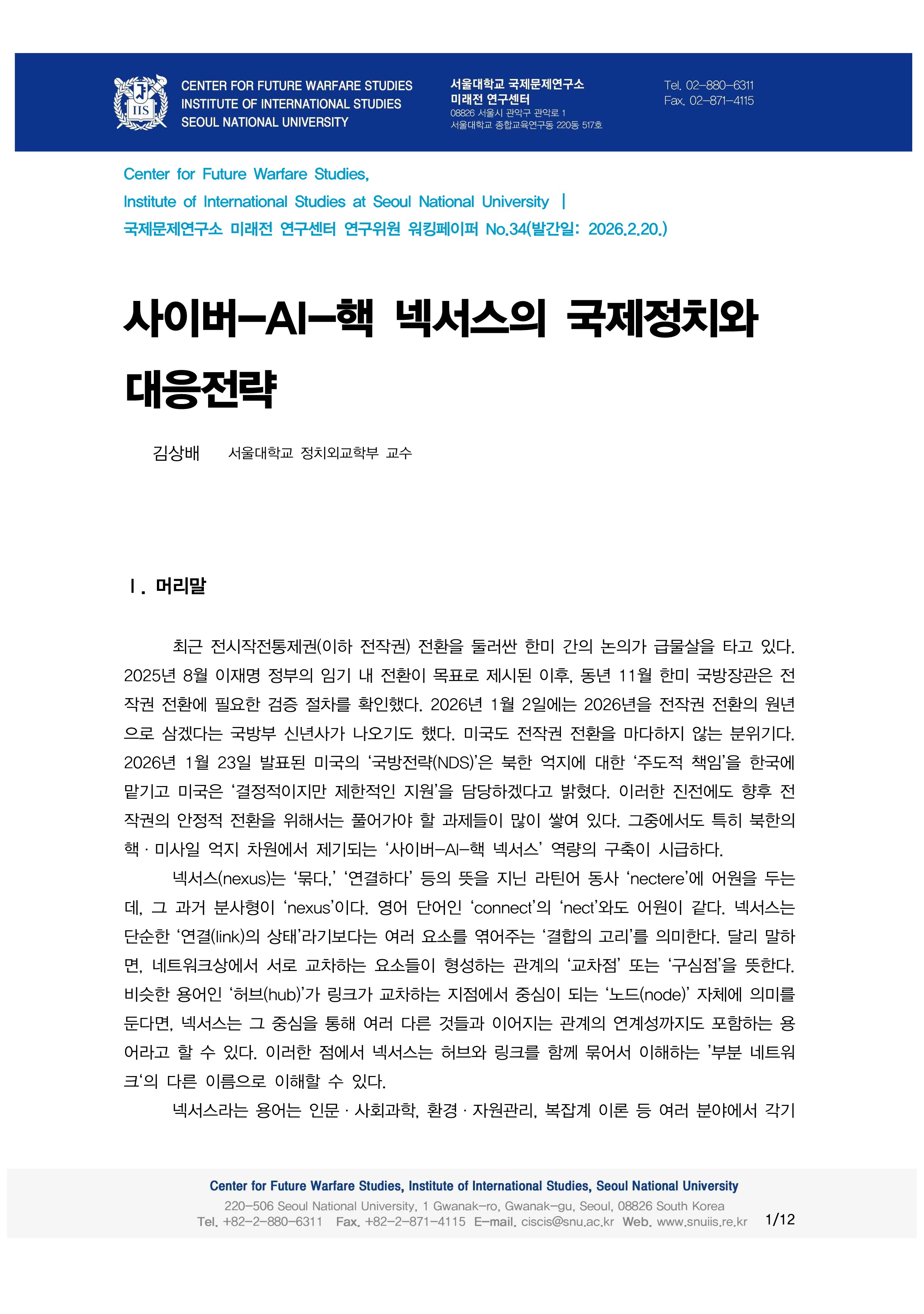 [연구위원 워킹페이퍼 34호]김상배-사이버-AI-핵 넥서스의 국제정치와 대응전략