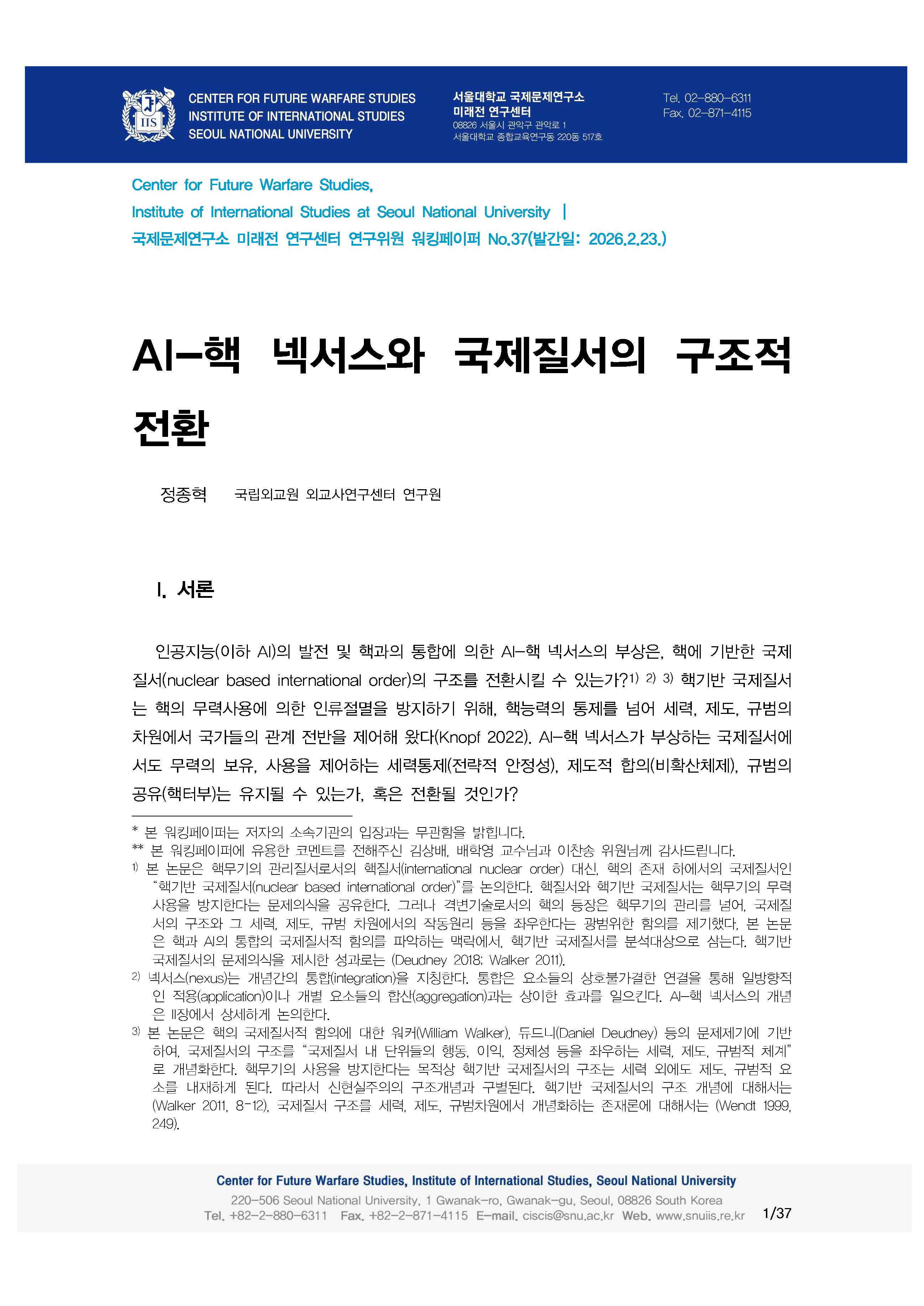 [연구위원 워킹페이퍼 37호]정종혁-AI-핵 넥서스와 국제질서의 구조적 전환