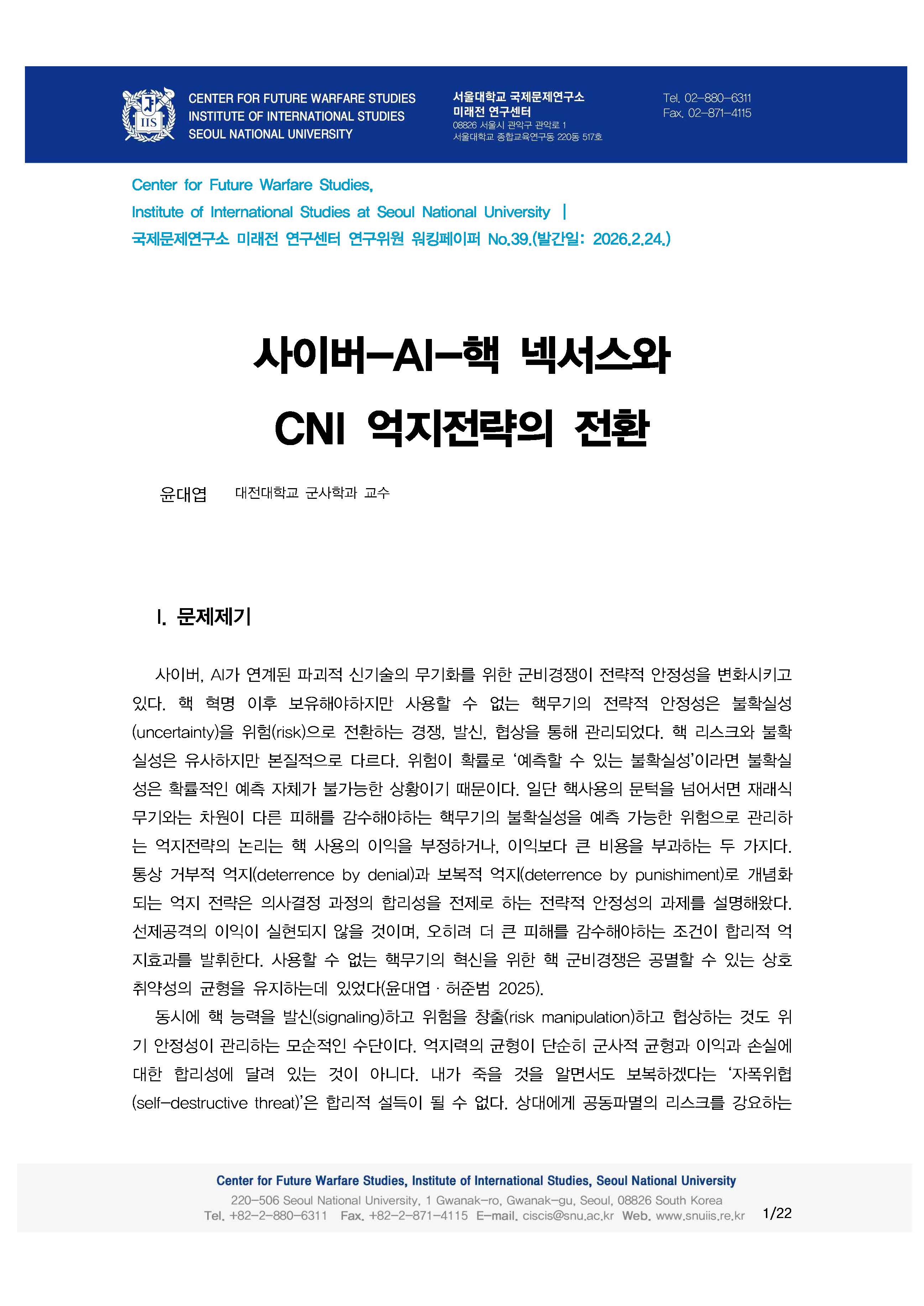 [연구위원 워킹페이퍼 39호]윤대엽-사이버-AI-핵 넥서스와 CNI 억지전략의 전환
