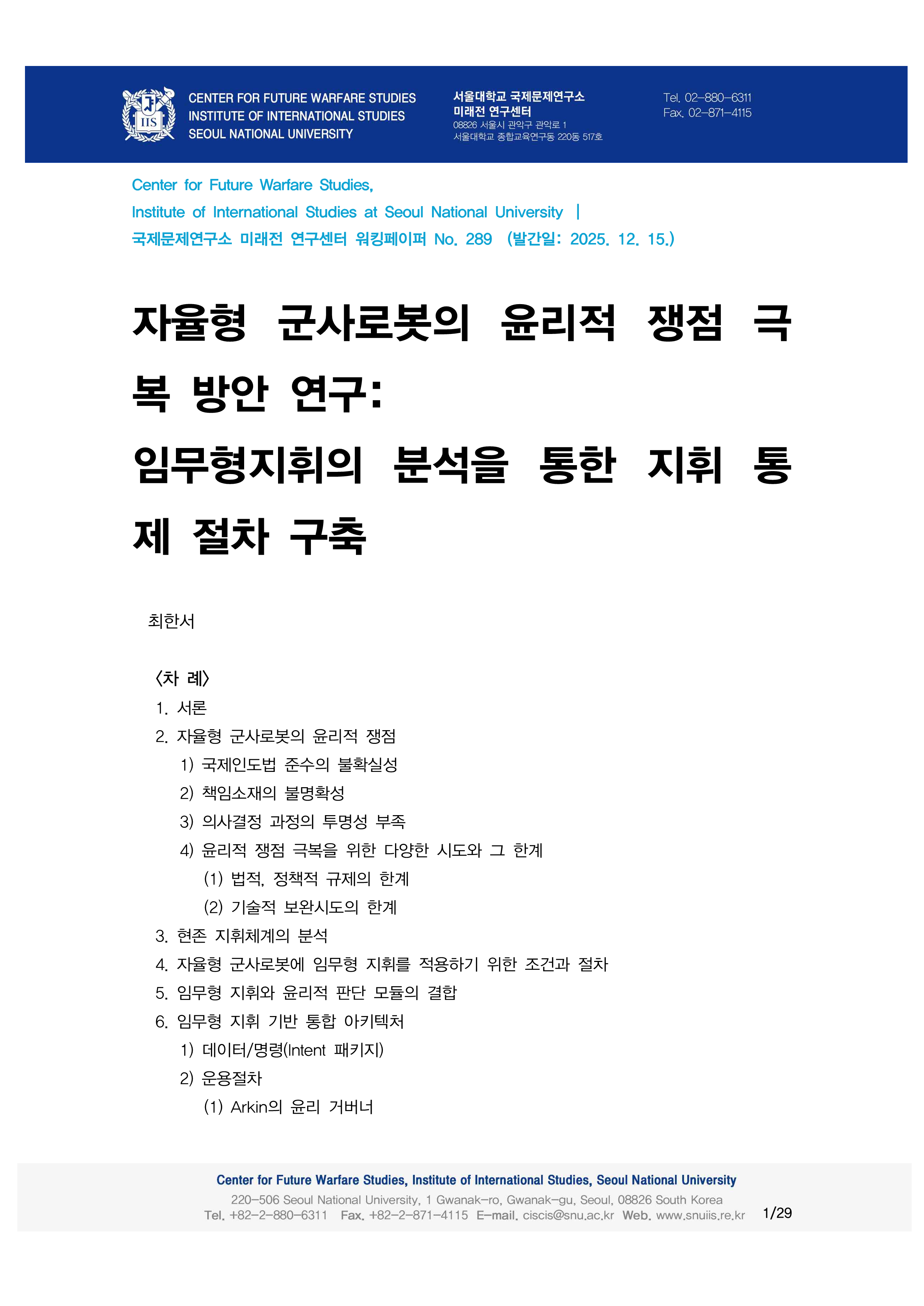 미래전 연구센터 워킹페이퍼 289 - 최한서 - ...