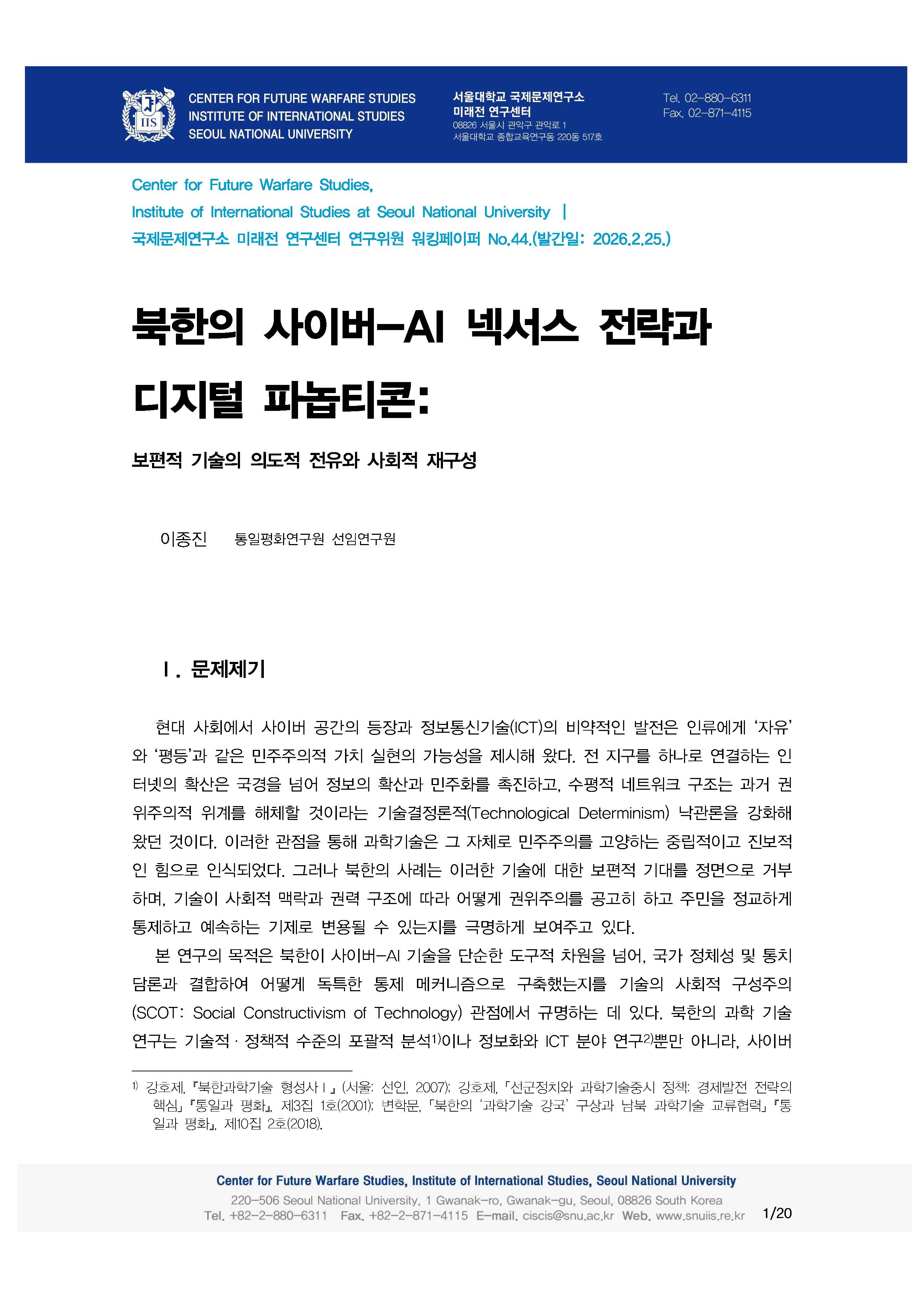 미래전 연구센터 워킹페이퍼 142 - 이강준 - ...