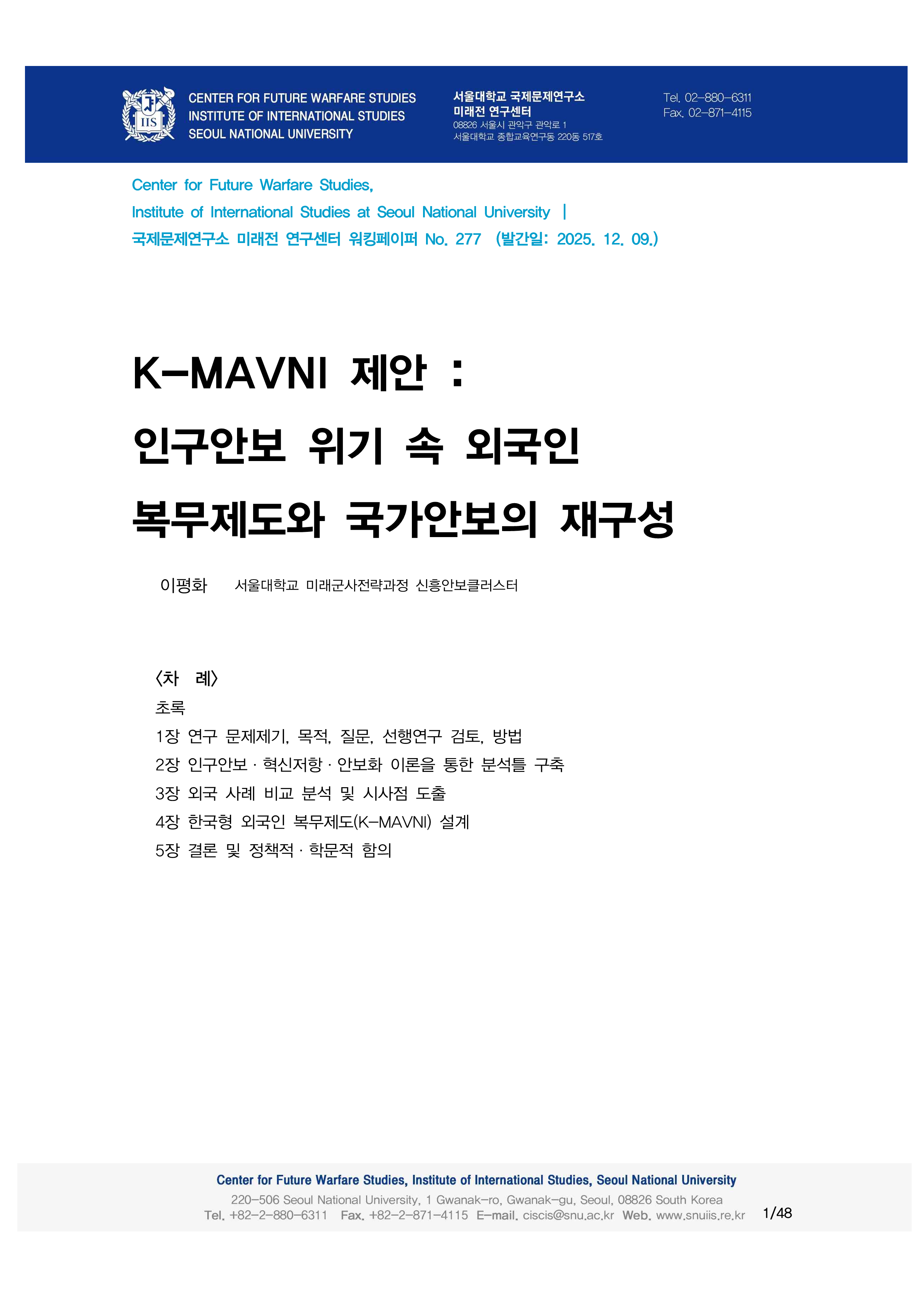 미래전 연구센터 워킹페이퍼 277 - 이평화 - K-MAVNI 제안